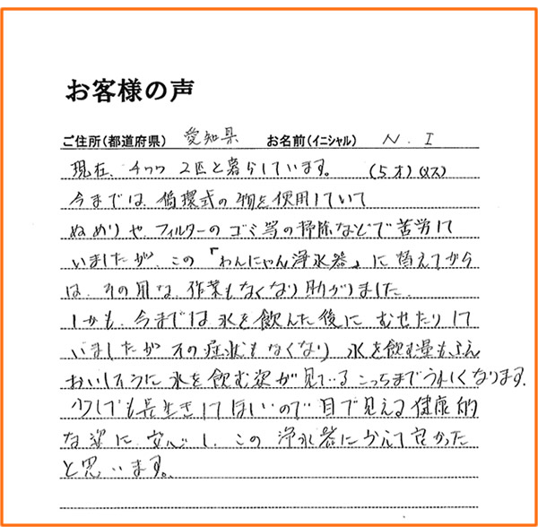 愛知県のお客様よりお便りをいただきました!