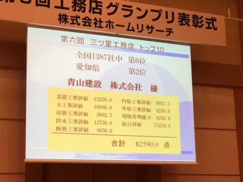 12月7日、第三者住宅検査機関における 三ツ星工務店の審査において全国6位に入賞いたしました。